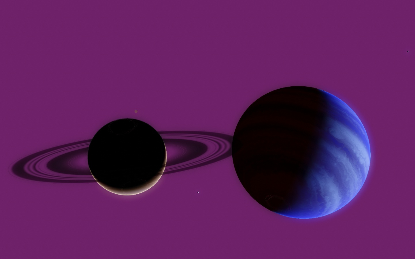 | Hornblower, One of the gas/ice giant's moon is eclipsing the ringed moon (also nice screenshot )