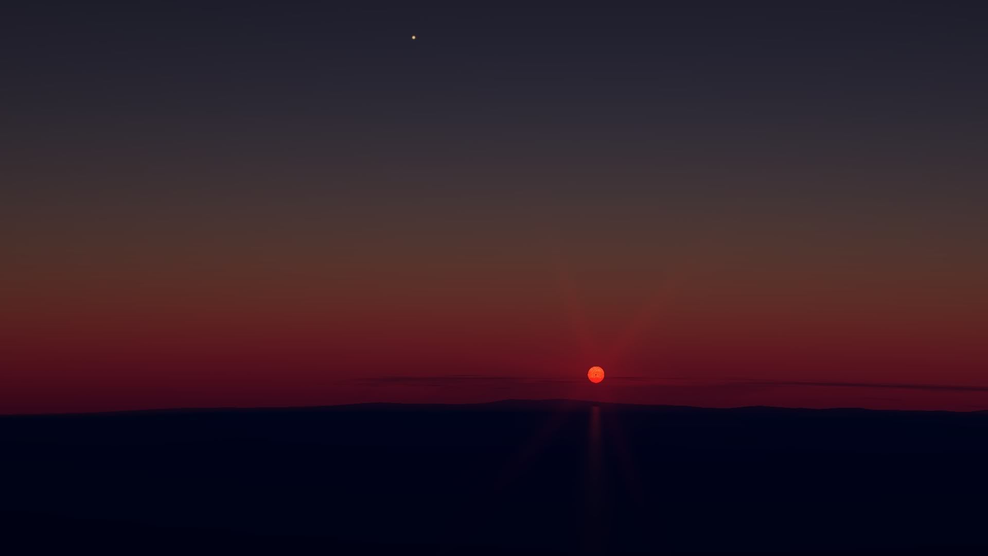 When I captured that 1st photo I was trying to convince myself that this was a sim and not the real thing . At that time the sun was setting where I live so I could compare it with the real thing in real time and believe me: There was definetly a difference in favor of the real sun but it was not that big. The aliasing effect on the outline circle of the simulated sun created this "fake" heat blur effect that we are all familiar with .