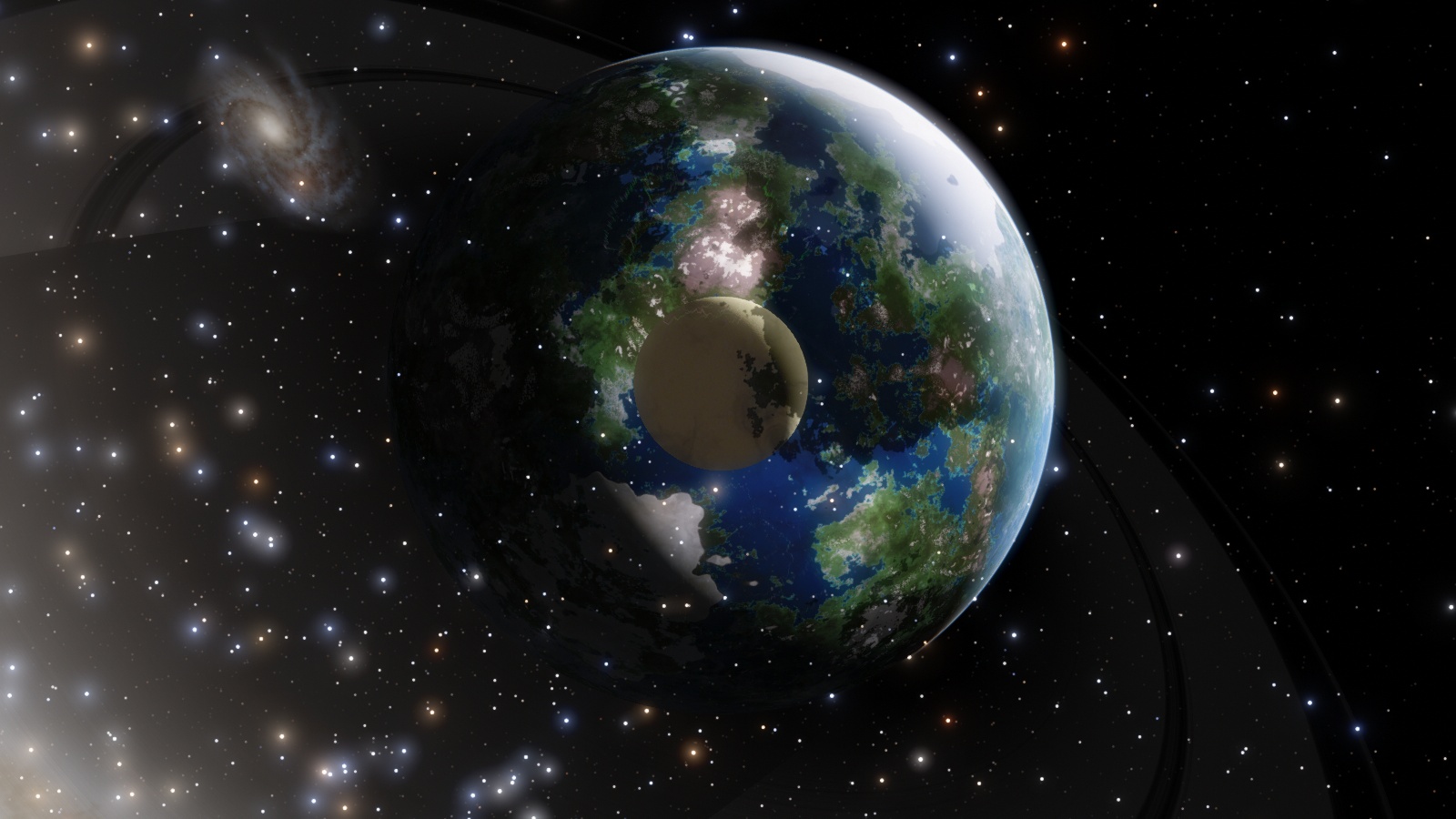 “Dearest Broodmother ‘Utupelos, why didst thou bring me here?” “To show you the celestial bodies and their positions in our religion, Yani’iche. This is important for you as a novice astrologer. Got it?” “Yes, Broodmother, I do. Now, what canst thou tell me?” “The sun is embodied by the goddess Psanihu, who is also the god of life. She brought forth life on Kelepei. Animals, plants, ‘Alaklimi, all sprang from her light long ago. But do not stare at her for too long, for she despises ogling of any kind and will blind you. “To the top right are Navrami and Shadalokh. Shadalokh I will speak about later. But Navrami, the dimmer one—he is the god of water, moving very fast around Psanihu. He is the messenger of the gods. “To the lower left are Chiraksai and her consort Mburos. Chiraksai, the crescent, is the goddess of fire. Her husband, the dot, is the rogue demon Mburos, who governs pride. Neither the gods nor the demons approved of their marriage, so Mburos was shrunken to a smaller size and Chiraksai became unable to shine fully every minute, hence her changing shape, just like fire. They had a child named Dofthutan, whom you can sometimes see, especially at night. He is the god of love. And Mburos’s roguery is why pride is not always an evil emotion. “The major moon is embodied by Ntsukadzoi. He travels around the sky more often than the sun because he married the sky, then an ordinary ‘Alaklimi named Fentipal. The gods elevated her to godly status, but the weather god Sunkochi did not approve of this and secretly swore to kill him and his children. So to this day, Ntsukadzoi and his son Royai and daughter Hupamo race across the sky, fearing lightning bolts will one day reach up above the clouds and kill them and cause them to fall to Kelepei. Ntsukadzoi, as you can see at night, often changes color to avoid the wrath of Sunkochi.” “My goodness, Broodmother. That sounds terrible. What about Shadalokh, over there?” “Shadalokh is the goddess of plants. She is married to Royai, and their children are the stars, which they were able to beget before their great separation. Royai travels in a different path than his sister and father in order to try and see her more often.”