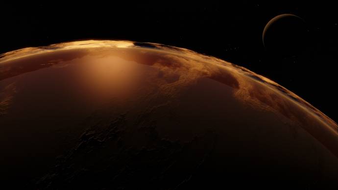 | Quote Kamil_Cader (  ) These clouds... did someone tweaked the shader again? Looks beautifull These are standard clouds. But the moon is slightly edited. It is the Uranus moon Miranda, in my addon for the time when the sun is a red giant star. It is then an Oceania.