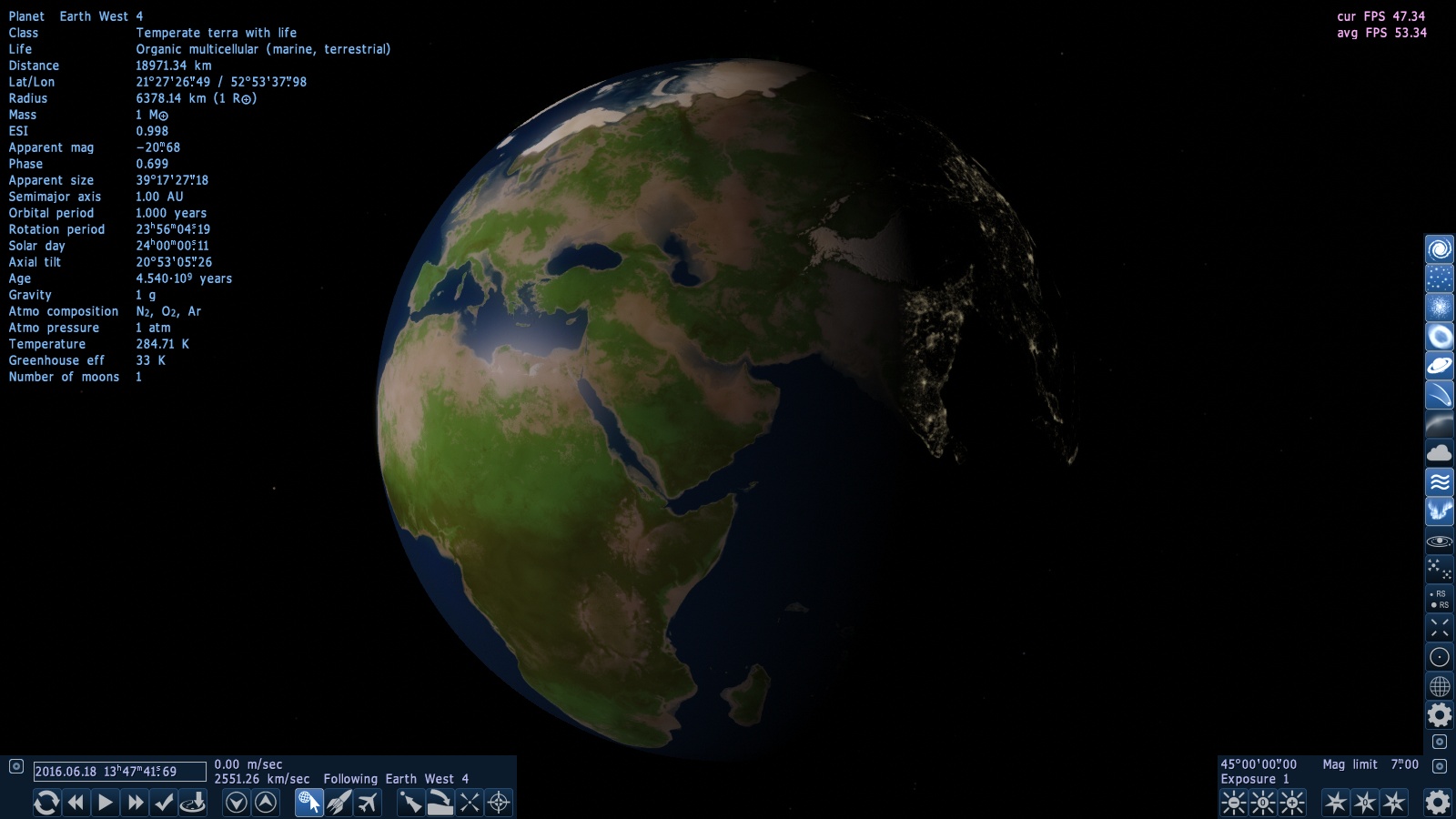 In a modified system is a bit more complicated! I changed your script something, I have 'Earth West 4' replaced with a prozeduiral generated earth.