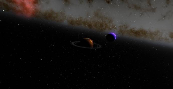 RS 8474-1353-6-38540-41 7.1 is a gas giant's moon and probably the most beautiful place in SE I've ever found. Many of the new volcanoes can be found here, you can see a green-tinged planetary nebula AND the gas giant it orbits is easily visible in the sky, pus a quite good view of the galaxy it's a part of (not sure if the Milky Way or not though)