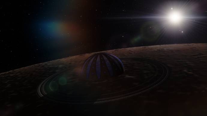 | I can imagine the rings represent solar panels, and inside the dome is terraformed. Would be nice to live in