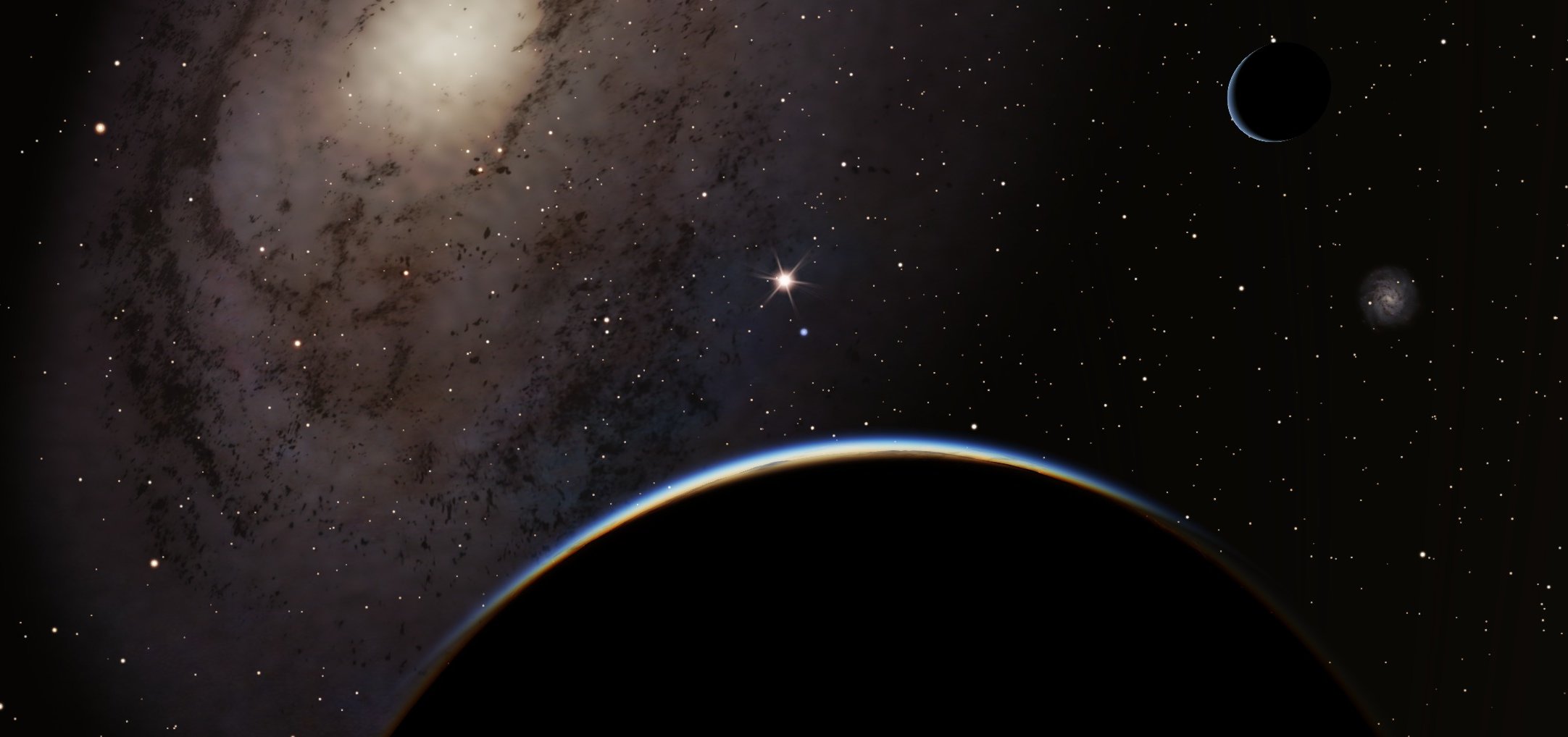 | A view of Andromeda from a frozen world. I love the atmospheric shadows that SE produces.