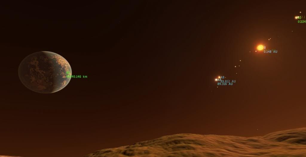 | 2 Planets With Life orbiting each other with the planet being smaller than the moon A 2 Close Planet Approach(zoomed in) a Shot in the surface of a desert