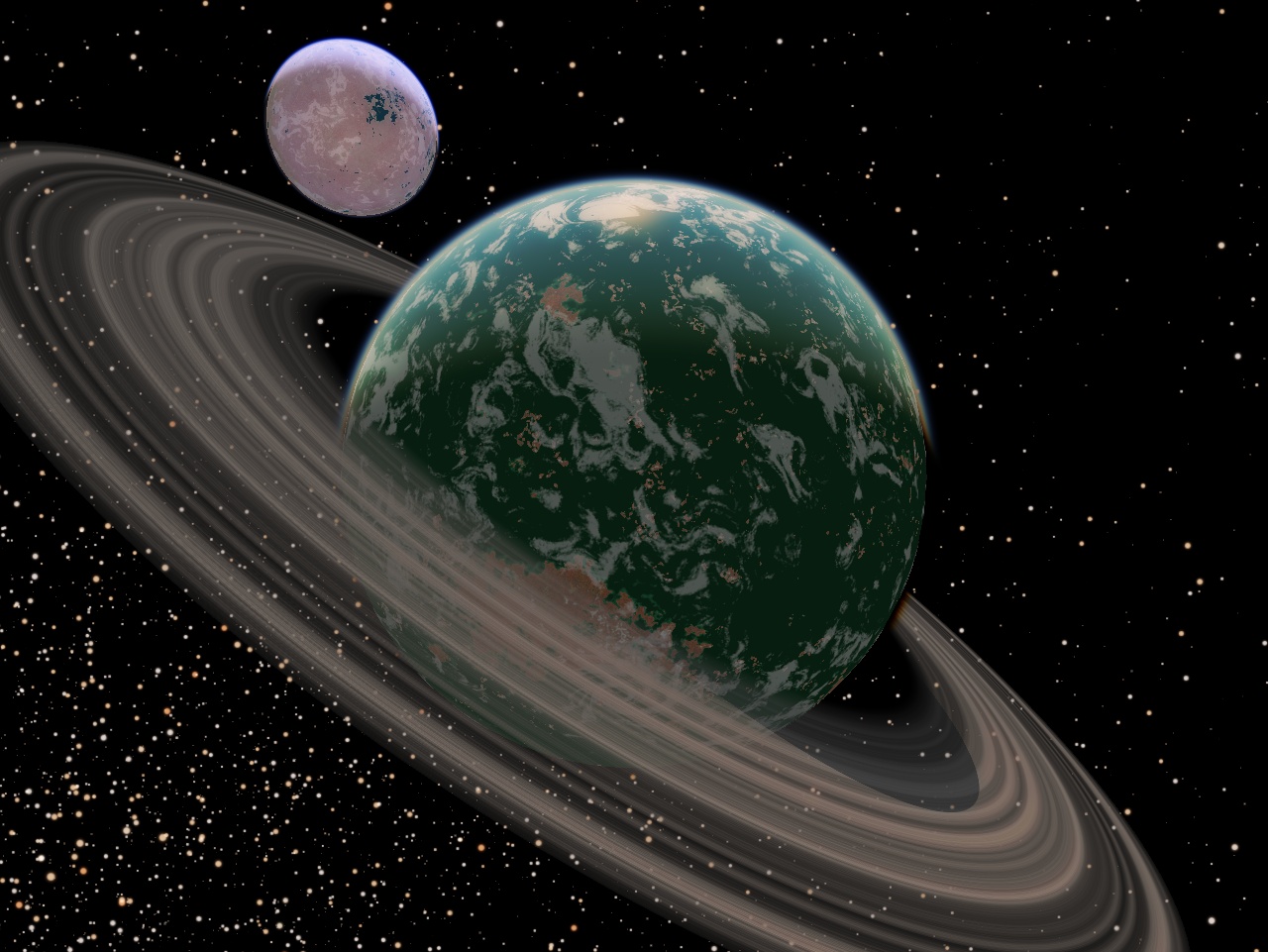 After reading about Space Engine on Rock Paper Shotgun yesterday I decided to give it a try, and I absolutely love it. Today I found this planetary system that I'd like to share with you. It is a temperate terra with life and its moon is also a temperate terra with life.
