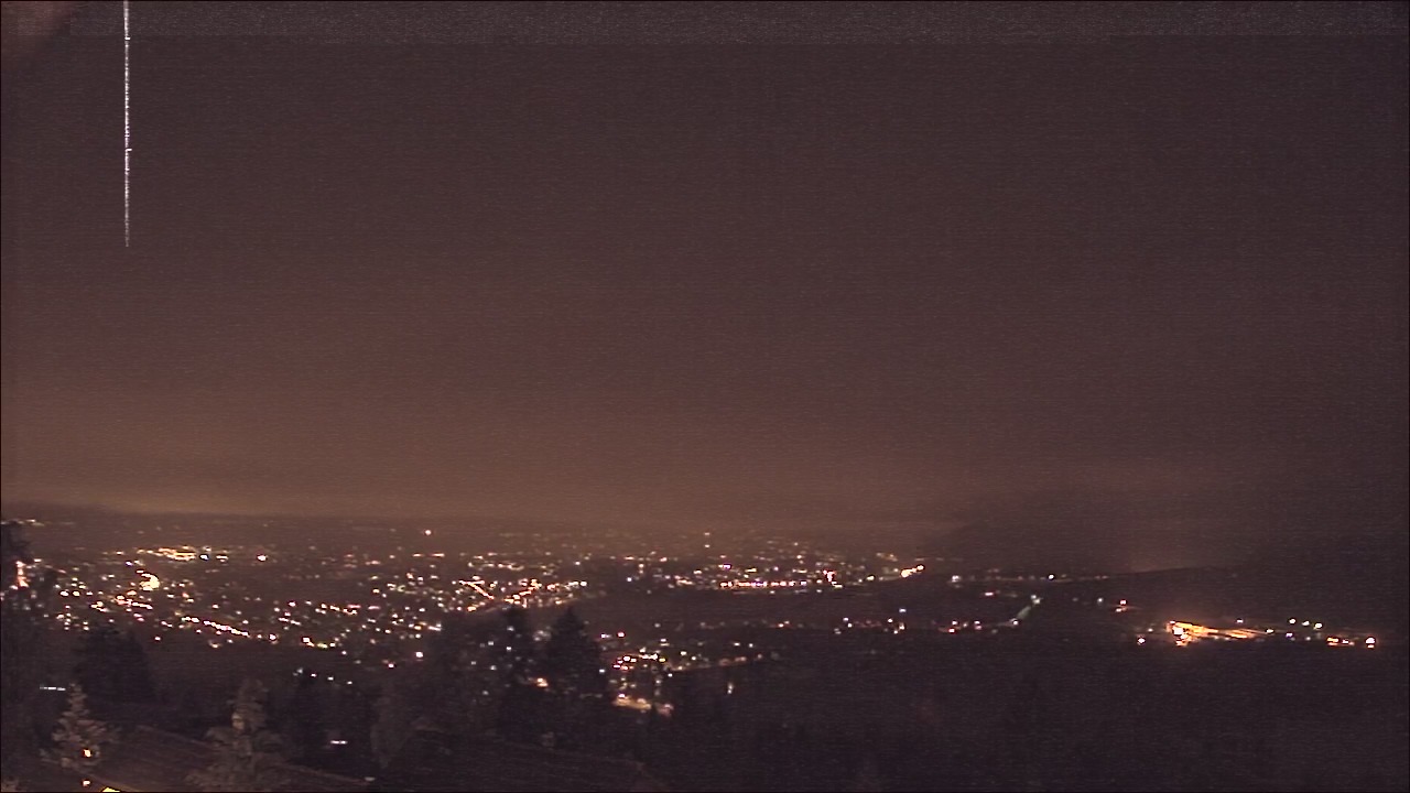 | Very fast fireball last night, only visible in a single 1/3" frame of the video and bright enough to be seen through a thin layer of clouds.