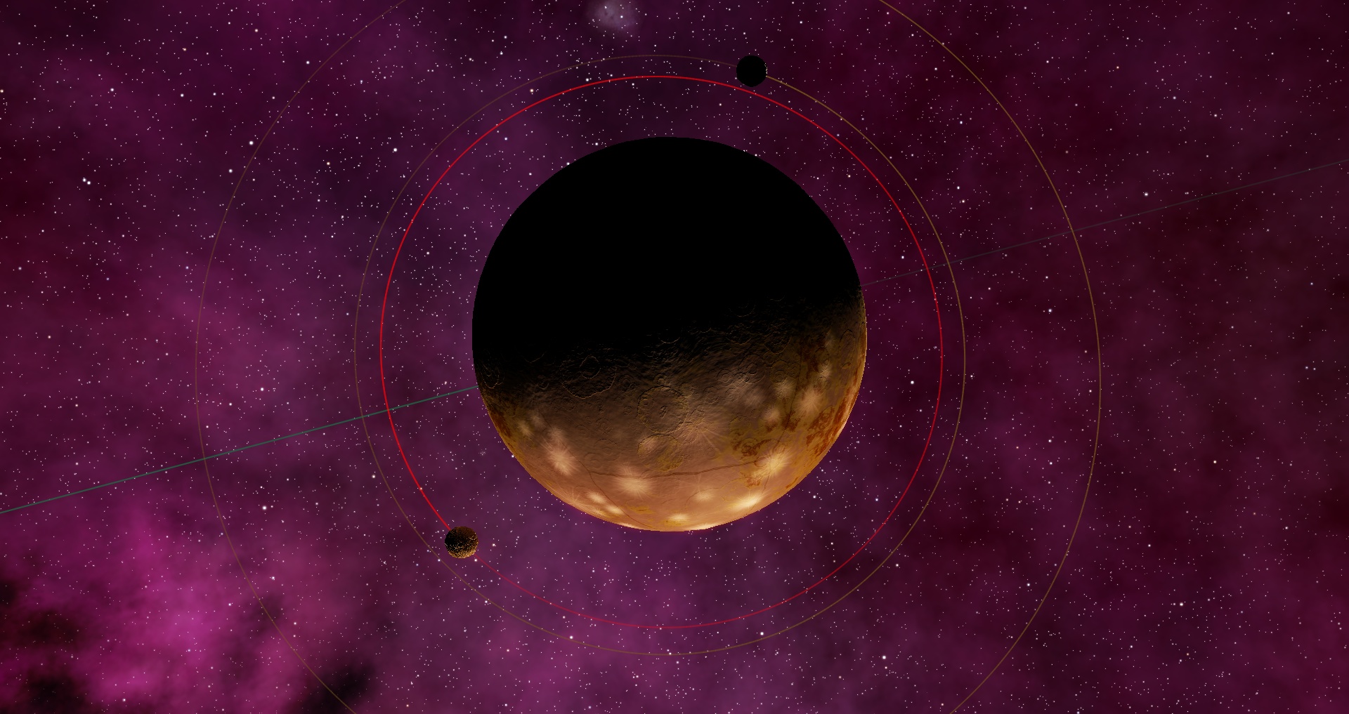There's a planet on Carina Nebula called RS 8409-1357-8-7184176-122 1 that has three moons. First I've noticed that one of the moons is extremly close to the planet. I've calculated that 160 km closer and it would surpass the Roche Limit creating a ring system. But that's not the bug obviusly because it's sufficiently far away to exist. The bug is because the second closest moon orbits so near to the first that they collide periodically fusing their surfaces toghether. I've seen this before on compact binary systems but no on moons, so I wanted to report this. Also the third moon (in distance) is closer enought to disturb the orbits of the other two moons and making this entire system imposible.